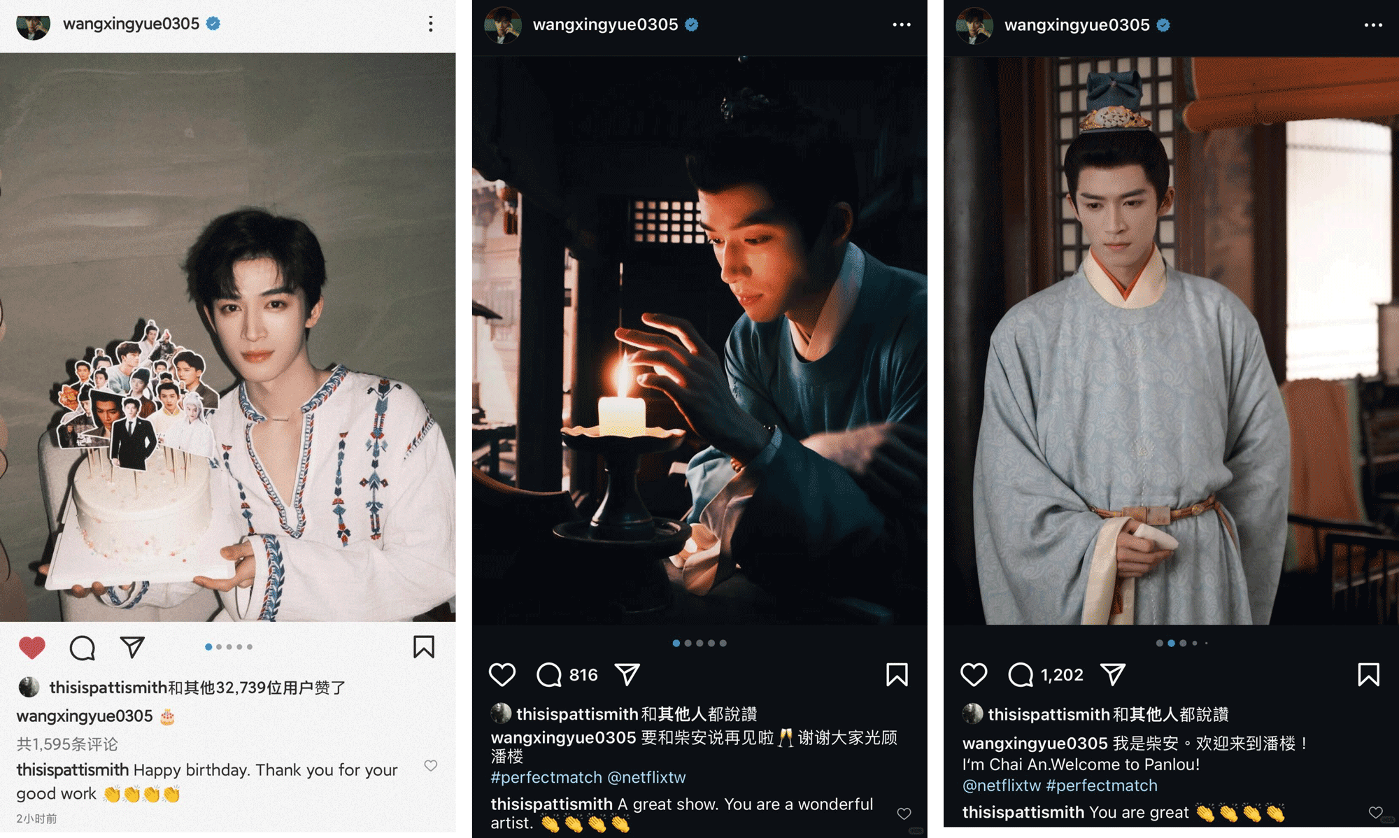 An interesting article in Sixth Tone on Patti Smith’s endorsement of the C-drama “A Perfect Match” on Instagram and its lead actor Wang Xingyue.